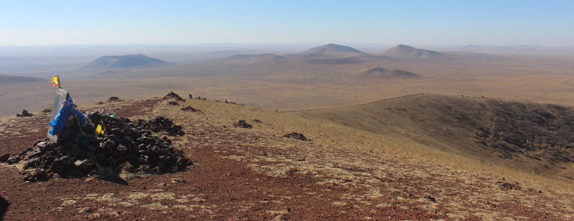 Шилийн богд. Расположена в аймаке Сухбаатар и хотя на первый взгляд кажется это бескрайние степи, но на самом деле здесь более 200 потухших вулканов. Самая высокая гора Шилийн богд. Также в этих местах много хун чулуу, каменных истуканов так называемых каменные бабы.