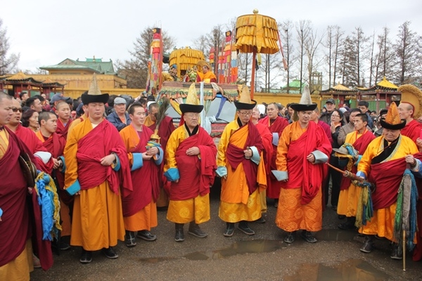 Во время богослужения в храме ламы надевают специальные головные уборы, по которым различается их функция. Так, лама, наблюдающий за порядком в храме, имеет высокую, плоскую, сшитую из двух половин шапку. Шапка делается плотной, верх парчовый, сзади прикреплены длинные ленты бучи.