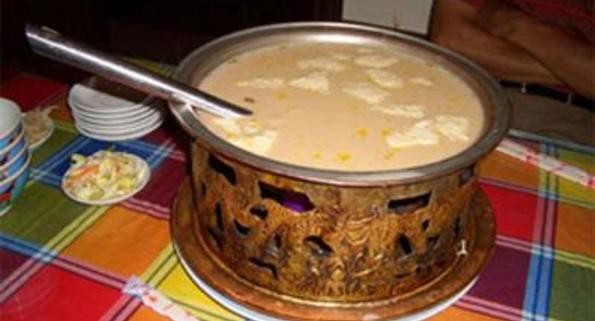 - Хорхог – одно из наиболее интересных блюд из баранины. Разделанное мясо с костями перекладывают слоями камнями, раскаленными на костре, в казан добавляют воду и специи. Герметично закрывают крышку и ненадолго ставят на открытый огонь. Приготовленное таким способом мясо имеет отменный вкус. Это блюдо в ресторане попробовать невозможно, только в компании кочевых монгол под открытым небом в степных просторах.