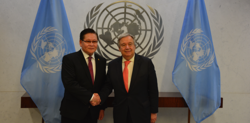 蒙古国副总理恩赫图布辛会见联合国秘书长安东尼奥•古特雷斯