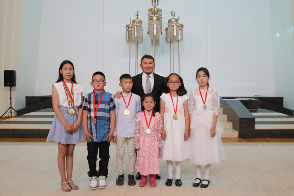 蒙古国总统巴图图拉格接见蒙古国少年儿童国际象棋代表